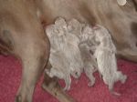 All born, note the striping effect on the coat of the newborn Weimaraner